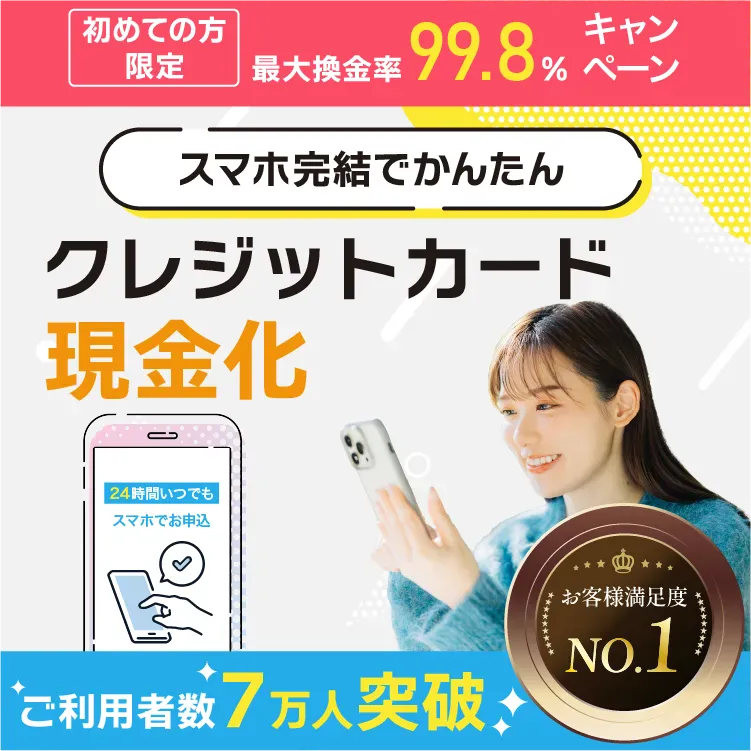 初めてのご利用の方に限り、キャンペーン適用の換金率で現金化ができます。