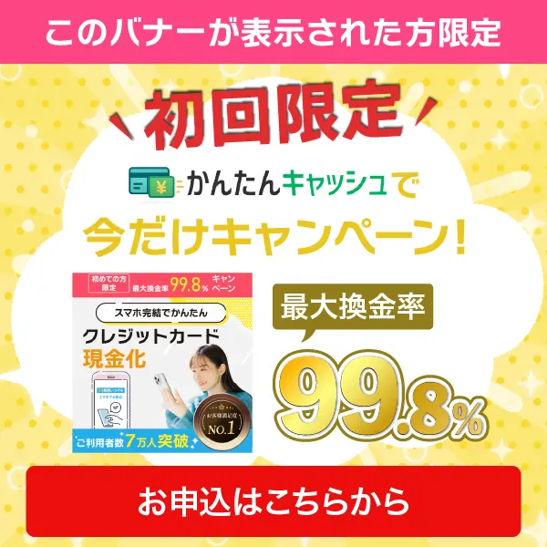 初めてのご利用の方に限り、キャンペーン適用の換金率で現金化ができます。