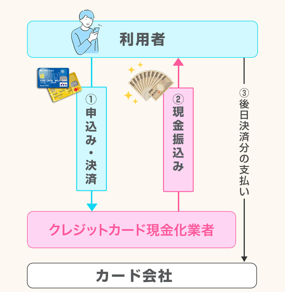 現金化希望額に応じて決済をしていただき、お客様のご指定の口座へ現金をお振込みいたします。